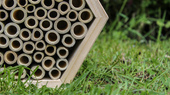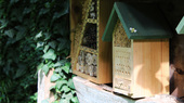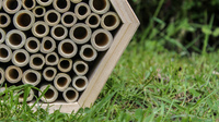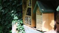 WildbieneDas Freiland- Aquarium und -Terrarium bietet Informationen über Wildbienen. Anders als Honigbienen leben die sogennanten "Solitärbienen" einzeln und sind dadurch oft auf Insektenhotels angewiesen, um ihre Eier nacheinander in den kleinen Gängen abzulegen. Die Weibchen versorgen die Eier mit Nektar, bevor die Zellen verschlossen werden. Geschlüpfte Larven fressen diesen Vorrat und verpuppen sich anschließend, um im folgenden Fühjahr zu schlüpfen.