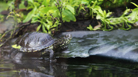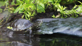 SumpfschildkröteDie Sumpfschildkröte ist eine der am meisten gefährdeten Wirbeltierarten Deutschlands - sie ist mittlerweile vom Aussterben bedroht, da ihr natürlicher Lebensraum zunehmend trockengelegt wird. Die geschickte Schwimmerin geht im Wasser auf die Jagd nach Kaulquappen, kleinen Fischen oder Würmern. Ihr Panzer ist weitaus instabiler als die schützende Hülle der Landschildkröte. Sumpfschildkröten können sogar Berührungen dort wahrnehmen. Dies haben sie einer Art lebenden Haut direkt unter dem Panzer zu verdanken.