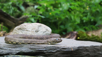 ÄskulapnatterSchon gewusst? Der Name der Äskulapnatter lässt sich auf den antiken Gott „Asklepios“ zurückführen. Er wurde als Gott der Heilkunde verehrt. Die Schlange ist heute auf dem Symbol von Apotheken zu erkennen. In freier Wildbahn ist die Äskulapnatter harmlos und ihr Bestand gilt als ungefährdet. Sie ist durch ihre glatte, gelb bis schwarze Oberfläche erkennbar.