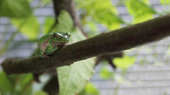 LaubfroschHoch oben auf Blättern und Sträuchern macht es sich der Laubfrosch gemütlich. Durch Haftballen an Fingern und Zehen gelingt es ihm mühelos, selbst glatte Oberflächen wie Glasscheiben zu erklimmen. Am Ziel angekommen, ziehen die 3-5 cm großen Lurche ihre Gliedmaßen während eines Sonnenbads dicht an den Körper, um kein Wasser zu verlieren. In Deutschland ist der Laubfrosch durch den Einsatz von Pestiziden und die Zerstörung seines natürlichen Lebensraums fast ausgestorben.