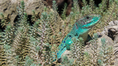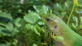 SmaragdeidechseDie wechselarmen Echsen gönnen sich meist morgens und abends lange Sonnenbäder, um ihre Temperatur zu regulieren. Doch schon bei kleinster Gefahr verstecken sich die scheuen Tiere schnell zwischen Gräsern oder in Höhlen. Dabei fällt vor allem ihr ungewöhnlicher Laufstil auf: Smaragdeidechsen bewegen gleichzeitig das rechte Vorderbein und das linke Hinterbein nach vorne.