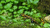 FeuersalamanderDas auffällige Muster aus schwarz und gelb dient dem Feuersalamander als Warntracht. Funktioniert die Abwehrmethode nicht, wehrt er sich gegen Feinde durch Giftdrüsen hinter den Augen und am Rücken. Für Menschen ist das Sekret jedoch ungefährlich. Ohnehin genießt der Feuersalamander in Deutschland besonderen Schutz, seine Höhlen in Wäldern werden bewusst erhalten. Dank dieser Schutzmaßnahmen können die Salamander in freier Wildbahn über 20 Jahre alt werden.