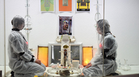 "Die Plakate im Hintergrund des Schreins sind Tarotkarten. Mich spricht weniger das Rituelle an, sondern die Archetypen, die abgebildet sind."