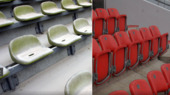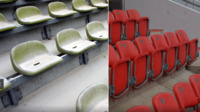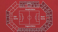 Im Max-Morlock-Stadion ist das Rauchen in drei Blöcken nicht gestattet. Der hier markierte Block 34, die 33 (schwarze Sitzschalen; links im Bild) und 19a (auf der Gegentribüne; nicht im Bild).