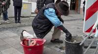 Erstens kann ich mir durchaus einen Fahrer leisten und beim Verlegen zugucken und Anweisungen geben. Zweitens hat mich eine Hessin gekapert und geheiratet. Sie ist 28 Jahre jünger und kann schon Stolpersteine verlegen. Sie war bereits in Deutschland, Österreich, in Lichtenstein und in der Schweiz unterwegs. Ich kriege dann immer nur zu hören „Aber der Gunter macht das viel schneller.“ Das stimmt, aber ich habe ja auch mehr als 100.000 Steine Vorsprung. Von den 117.000 verlegten Steinen habe ich in etwa 90 Prozent selber verlegt, aber inzwischen brauche ich Hilfe. Im Jahr 2019 war ich 270 Tage von zu Hause weg und irgendwann hat mein geliebtes Eheweib Katja gesagt „Ne, weniger“. Wenn ich bereits an dem jeweiligen Verlegungsort war, übernimmt der Bauhof meine Arbeit. Eine Erstverlegung mache ich aber immer noch selber, um den Leuten zu zeigen, wie man die Steine richtig verlegt. Ich sehe da also überhaupt kein Problem. Wir sind in der Stiftung gut aufgestellt.