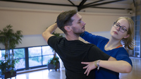 Getanzte IntegrationTanzen geht auch im Sitzen! Ob Cha-Cha-Cha oder Rumba – Julia Christoffer tanzt trotz ihrer Gehbehinderung gerne und nimmt dafür im Rollstuhl Platz. Im Video zeigen sie und ihre Mittänzer, wie das genau funktioniert und welchen Vorteil die "Rollis" gegenüber einem "Fußgänger" haben