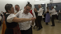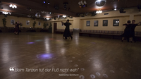 Dort dreht sich inzwischen vorsichtig das älteste Paar im Raum. Dieter und seine Bekannte wohnen in einem nahegelegenen Seniorenheim, beide sind weit über 70. Sie nimmt ihn regelmäßig mit zum Tanztee. "Es ist sehr angenehm, im Alter nicht nur in seinem Zimmerchen zu sitzen", sagt der gebürtige Rumäne, er kommt aus dem selben Ort wie Peter Maffay. Seine Freundin nickt. "Bewegung ist ja auch gesund", fügt sie hinzu. "Ich habe nur eine Zehe und kann nicht gut laufen. Aber beim Tanzen, da geht es."