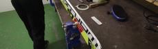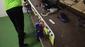 3. Der Ski wird nun in horizontaler Ebene ausgerichtet und die Wachsmischung wird mit einem Wachsbügeleisen auf den Belag getropft und gleimäßig eingebügelt.