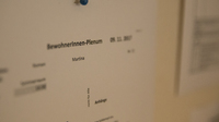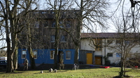 Die Gruppe besichtigt das Gelände. Der Tempelhof stand seit mehreren Jahren leer, die Gebäude sind größtenteils heruntergekommen. Trotzdem sind 18 von 23 Menschen dafür, den Tempelhof zu kaufen und eine Gemeinschaft aufzubauen.