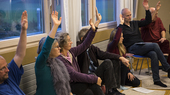 Die Gemeinschaft hat für ihre Konsenskultur zwei verschiedene Abstimmungssysteme entwickelt. Es geht darum, jeden Einzelnen mitzunehmen und nicht durch Mehrheit zu übergehen. Auf der nächsten Folie geht es um das Verfahren bei Sachthemen. Danach erklären wir die Stimmmöglichkeiten über die Aufnahme von Menschen.