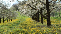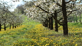 Im April versinkt die Region in Oberfranken in ein schneeweißes Meer aus Kirschblüten. Über 200.000 Kirschbäume bedecken die Landschaft umgeben von saftig grünen Weiden und selig summenden Bienen. Bedingt durch das milde Klima und den fruchtbaren Boden zählt die Fränkische Schweiz zu dem größten geschlossenen Kirschanbaugebiet Deutschlands.