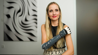 Die andere ist ein Modelstück für eine Hightech-Prothese, die sich durch die eigenen Muskeln steuern lässt.