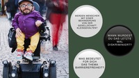 Beim Einkaufen, in der Schule, am Arbeitsplatz, beim Sport, im Theater, im Kino, im Urlaub, bei Veranstaltungen oder bei der Nutzung öffentlicher Verkehrsmittel sehen sich viele Menschen mit einer Behinderung mit Barrieren und Diskriminierung konfrontiert.