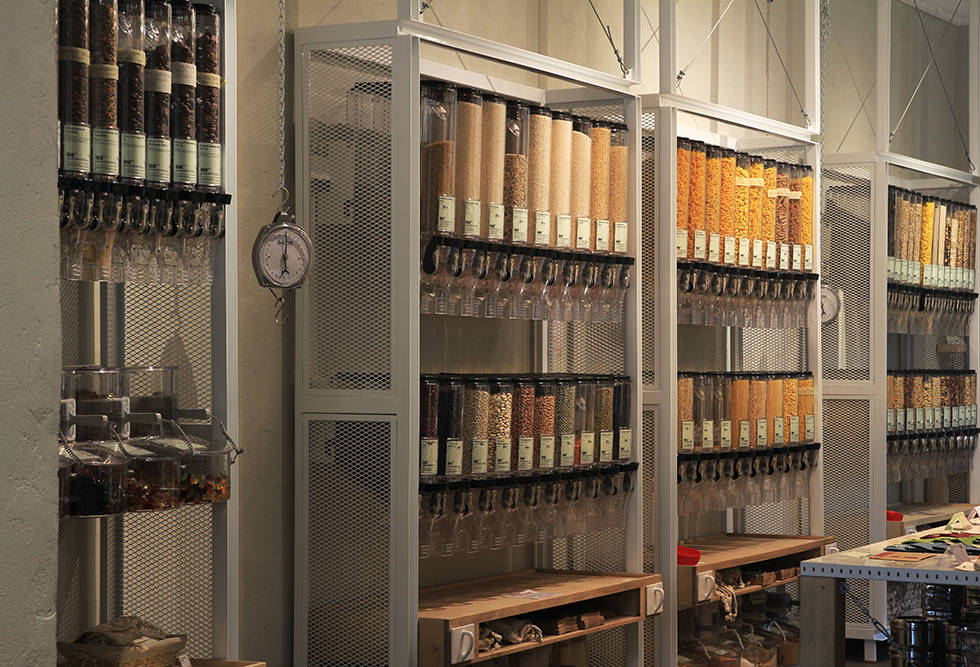 Märkte oder Läden besuchen, die vor Ort die Lebensmittel in den mitgebrachten Behälter füllen.