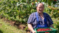 Ich habe heute ungefähr 45 Kilogramm dabei. Und ich verkaufe alle! Ich nehme keine einzige mit nach Hause. Ich gehe erst weg, wenn die letzte Kirsche verkauft ist.
