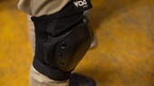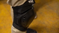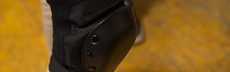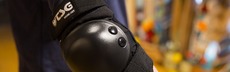 Die Knieschoner müssen perfekt sitzen, da sie bei einem Sturz die meiste Energie abfangen müssen. Damit sie nicht wegrutschen, werden sie wie ein Strumpf über das Bein gezogen und anschließend mit Klettbändern verschlossen.