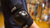 Die Ellenbogenschoner ähneln im Aufbau den Knieschonern und haben auch eine Kappe aus Hartplastik, ein Polster aus Schaumstoff, einen Strumpf und in der Regel zwei Klettverschlüsse.