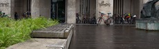 Das germanische Nationalmuseum ist keine offizielle Skateanlage, trotzdem gibt es immer wieder Skater, die dort fahren. Schlussendlich wurden die Bänke mit Metallschnallen präpariert, damit die Skater dort nicht mehr fahren können.